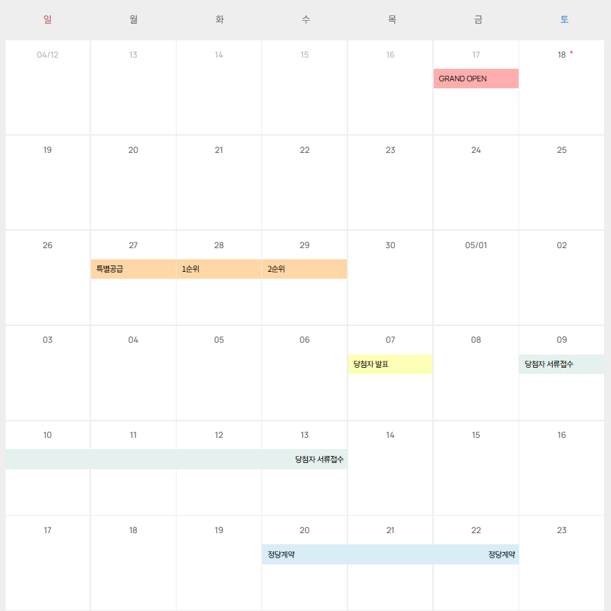 특별공급 접수: 2026년 4월 27일(월)